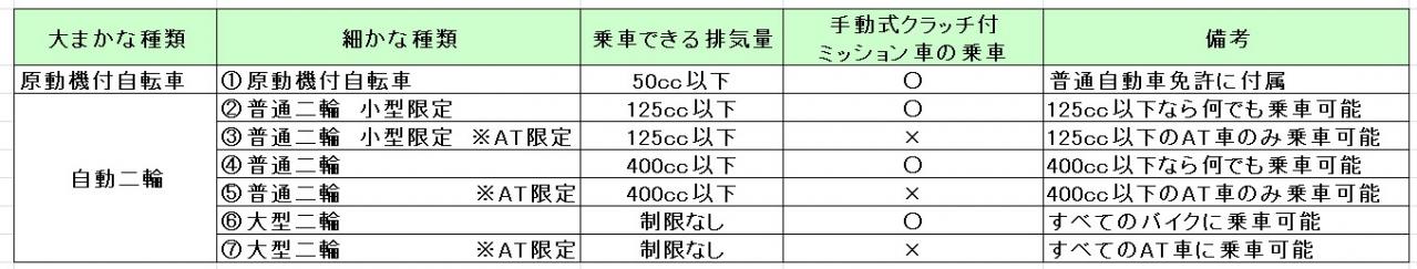 「排気量125cc以下」のバイクに乗車可能