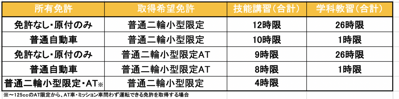 ★AT小型限定普通二輪免許の場合