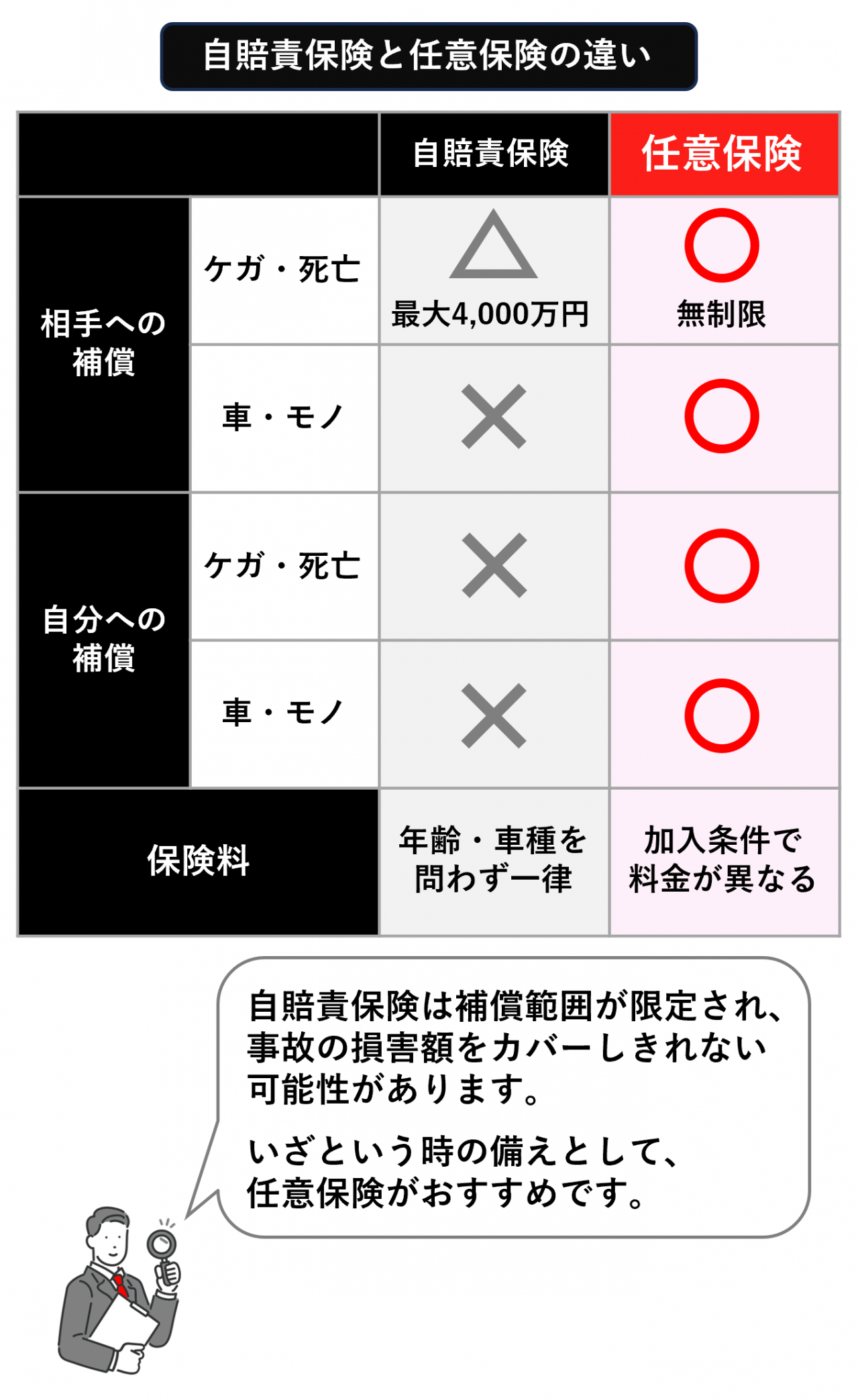 自動車保険の「自賠責保険/任意保険」の違い