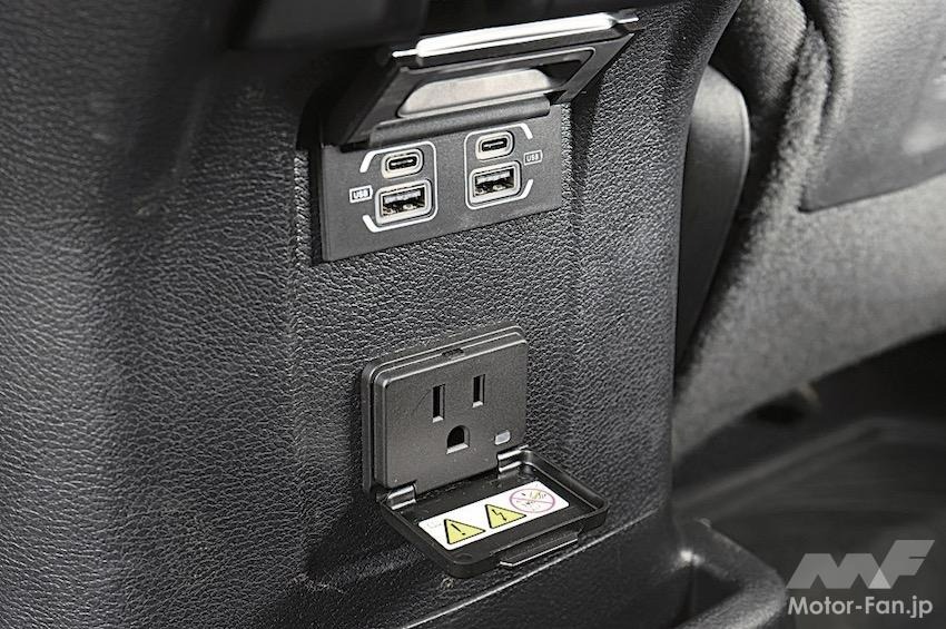 さらに、電動化のためのシステムを搭載して重量が増加しても走破性は変わらず、地上高やアプローチ&デパーチャーアングルへの影響もないことを強調して伝えている。駆動用バッテリーはリヤシートの下に搭載されているが、居住空間や荷室への影響はなく、背もたれを前倒しすると最大で約2000ℓものスペースを創出することができる。
