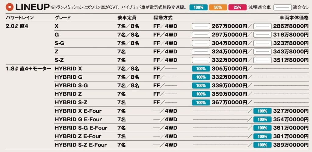 パワートレインで違う居住性 安全運転支援機能は全車充実