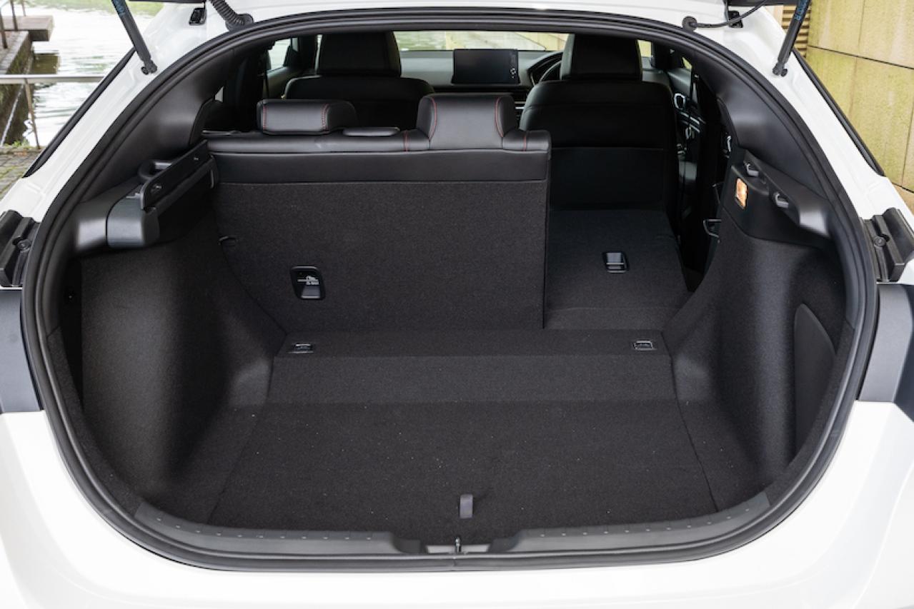 コンパクトハッチバックとも言えるホンダ シビックだが、ラゲッジルームは425lLの大容量だ。ハッチを上げるので開口部も広く、荷物も積みやすい。