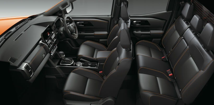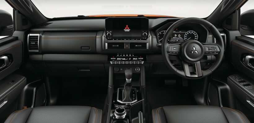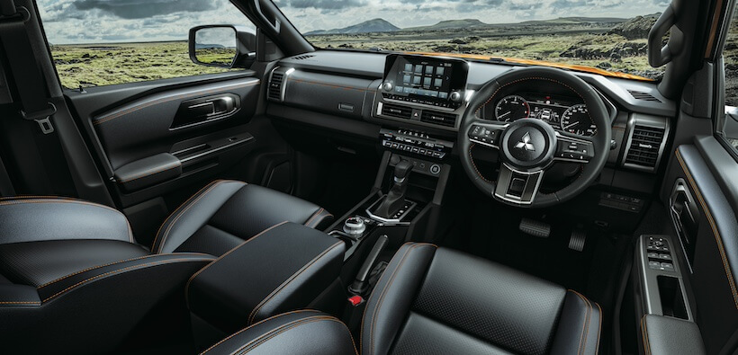 タフで力強い佇まいを見せる三菱 トライトン。とくに上級仕様では外観をグレードアップするパーツもふんだんに装着されるが、ベーシック仕様でも存在感は抜群だ。機能的なうえ、上質感さえ漂う内装デザインについてもまずはここで見ていこう。