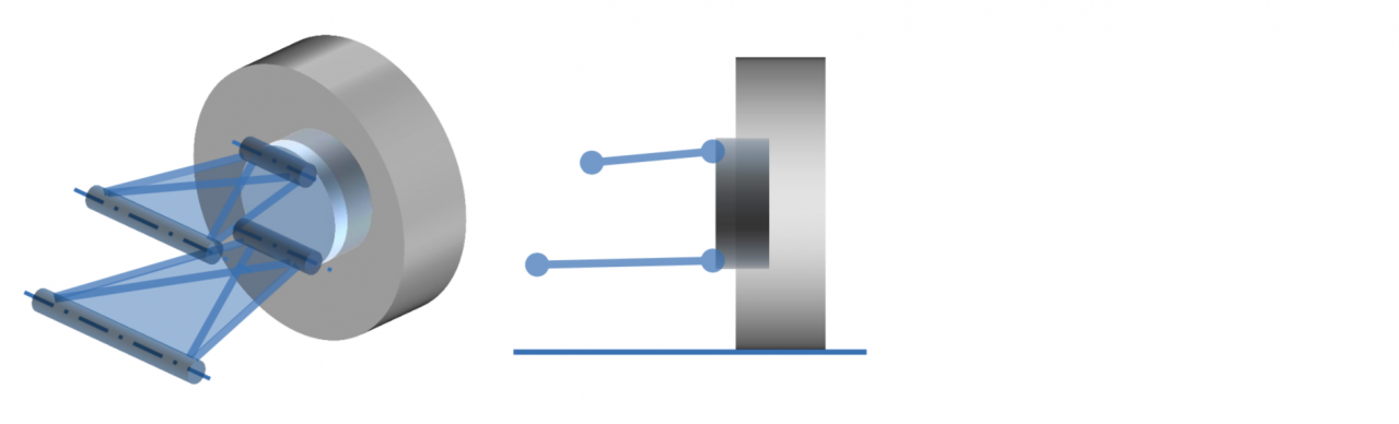 3次元であっても上下4本の回転軸が平行なら、このサスは上下に作動できるのです。「2次元的に作動している」ということですね。なかなか面白いでしょう。