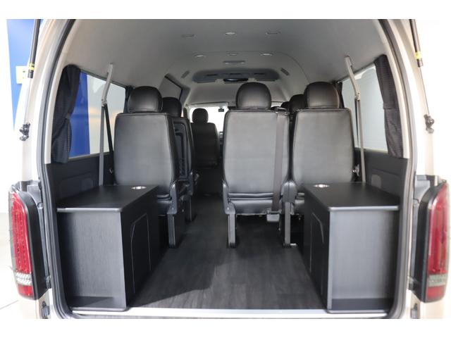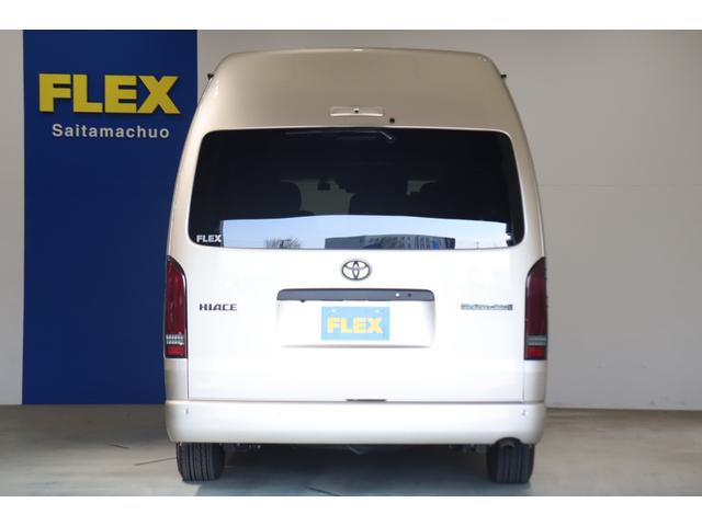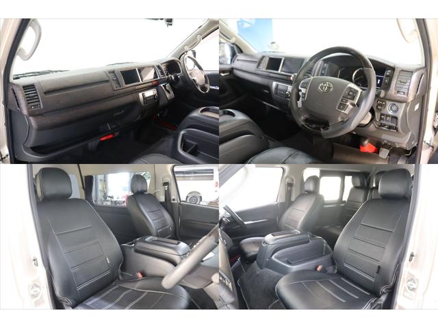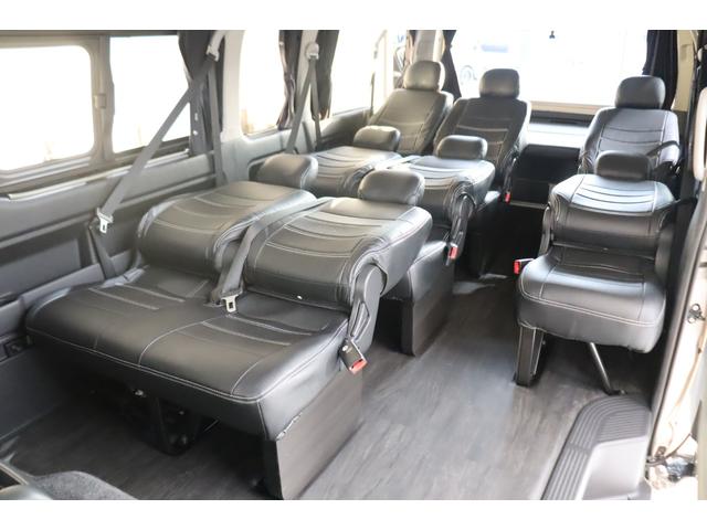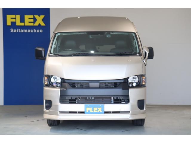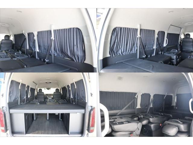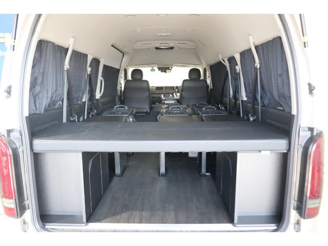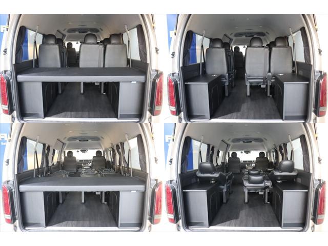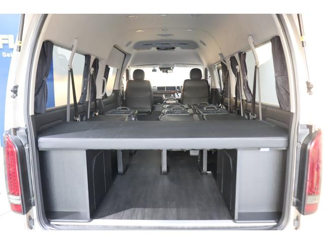 トヨタ ハイエースワゴングランドキャビン 4WD 床張り施工 ベットキット リクライニング加工 フルセグナビ/フリップダウンモニター DELF 02 17インチAW パノラミックビューモニター/デジタルインナーミラー パワースライドドア