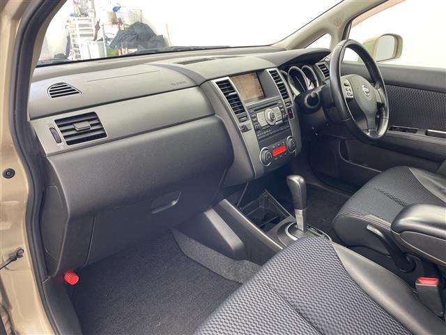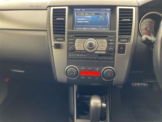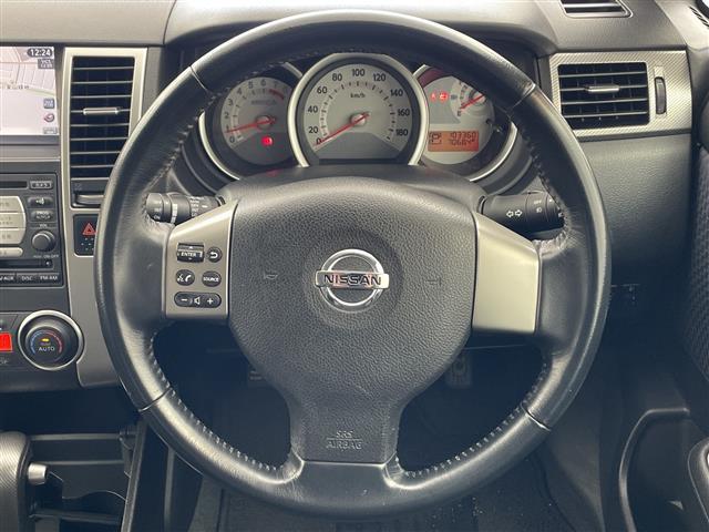 日産 ティーダ15M ・純正ナビ(CD/DVD/HDD/TV)・バックカメラ・ビルトインETC・ステアリングスイッチ・ヘッドライトレベライザー・革巻きステアリング・オートエアコン・ドアバイザー・電格ミラー