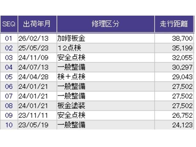 - また、修復歴・法定整備・保証の有無ならびに詳細内容につきましても、必ず各販売店にご確認いただきますようお願いいたします。