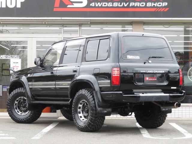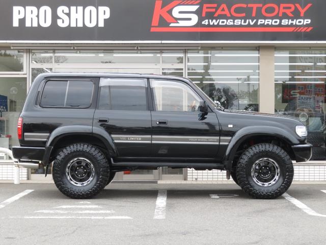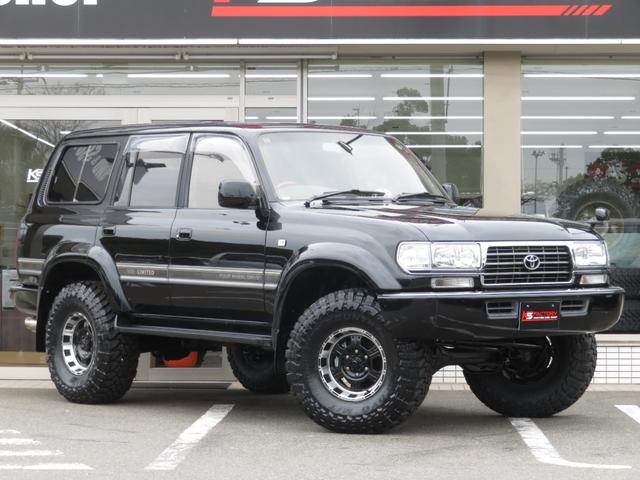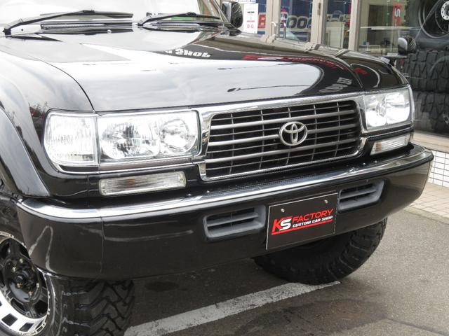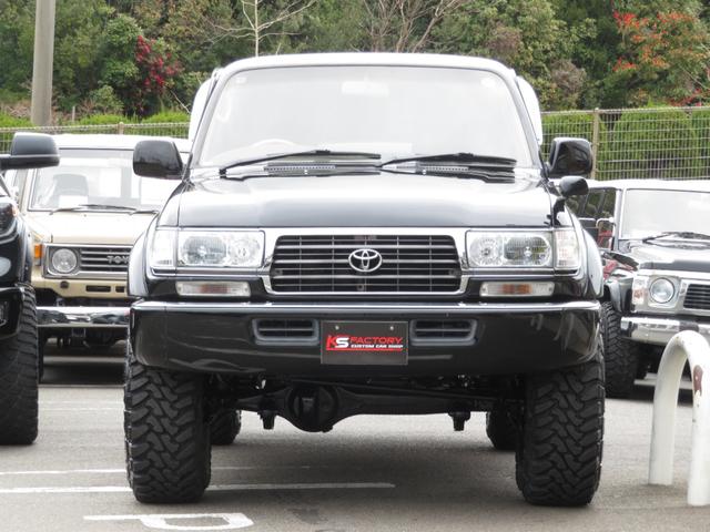 トヨタ ランドクルーザー80VXリミテッド 中期モデル 全塗装済黒 新品ヘッドライト クリスタルレンズ 3インチUP 社外ショック プロコンプ製16インチAW 新品TOYO製MTタイヤ 社外マフラー シートカバー 社外ナビ バックカメラ ETC